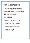 Mastering medication math is essential for safe, accurate nursing practice. This chapter-by-chapter test bank is fully aligned with Calculating Drug Dosages: A Patient-Safe Approach to Nursing and Math, 3rd Edition by Martinez de Castillo & Werner-McCullough. Designed for undergraduate nursing students, NCLEX candidates, and faculty, it provides step-by-step calculati...