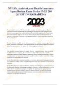 NY Life, Accident, and Health Insurance Agent/Broker Exam Series 17-55| 200 Questions And Answers Graded A