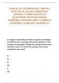 SURGICAL TECHNOLOGY NBSTSA TEST FINAL EXAM CURRENTLY TESTING COMPLETE EXAM QUESTIONS WITH DETAILED VERIFIED ANSWERS (100% CORRECT ANSWERS) /ALREADY GRADED A+