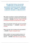 EPA 608 TEST FINAL EXAM 2024 COMPLETE ACCURATE EXAM QUESTIONS WITH DETAILED VERIFIED ANSWERS (100% CORRECT ANSWERS) /ALREADY GRADED A+ //BRAND NEW!!