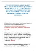 SMOG INSPECTOR CALIFORNIA TEST FINAL EXAM AND PRACTICE QUESTIONS EXAM 2024 ACTUAL EXAM COMPLETE ACCURATE EXAM QUESTIONS WITH DETAILED VERIFIED ANSWERS (100% CORRECT ANSWERS) /ALREADY GRADED A+