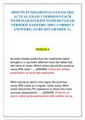 HESI FUNDAMENTALS EXAM 2024 ACTUAL EXAM 2 VERSIONS EACH WITH 55 QUESTIONS WITH DETAILED VERIFIED ANSWERS AND RATIONALES/ALREADY GRADED A+