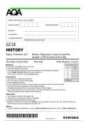 2025 AQA GCSE HISTORY Paper 2 Section A/C:Britain: Migration, empires and the people: c790 to the present day Combined Question Paper and Final Marking Scheme