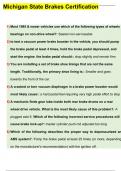Michigan State Brakes Certification Exam Questions and Answer