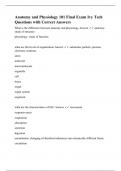 Which of the following would NOT be... i x Exam (elaborations) • 8 pages • by beaeve54 • uploaded 2024 Quick View i x ivy tech • ivy tech Anatomy and Physiology 101 Final Exam Ivy Tech Questions with Correct Answers (0) $18.49 0x sold What is the difference between anatomy and physiology Answer anatomy- study of structure