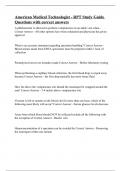 T1 is the cha... i x Exam (elaborations) • 7 pages • by beaeve54 • uploaded 2024 Quick View i x Amrt • Amrt American Medical Technologist - RPT Study Guide Questions with correct answers (0) $15.49 0x sold A phlebotomist is allowed to perform venipuncture on an ankle vein when... Correct Answer - All other options have been exhausted and physician has given approval