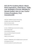 SCCJA Pre-Academy Block 2-Basic Patrol Operations, Child Abuse, Traffic Law, Strategies of Arrest, Mentally Ill, Sexual Assault, Intro to Law, Courts-Crimes-Procedures, First Amendment