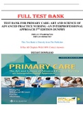This Test Bank for Primary Care: Art and Science of Advanced Practice Nursing-An Interprofessional Approach, 5th Edition by Dunphy contains 100% real questions and correct answers for test preparation. It enables you to get hands-on practice for demonstrating your knowledge and upping your grades. The test bank is indeed recommended as being one of the most effective and efficient ways to prepare for your exam. Download instantly after purchase. THANK YOU AND ALL THE BEST.