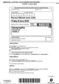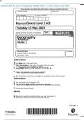 Edexcel GCE A Level In Geography (9GE0) Paper 1 +mark scheme may 2025