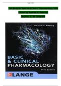 Test Bank for Basic and Clinical Pharmacology 15th Edition By Bertram G. Katzung Chapter 1-66 Complete Guide A+. 1. Introduction: The Nature of Drugs & Drug Development & Regulation 2. Drug Receptors & Pharmacodynamics 3. Pharmacokinetics & Pharmacodynamics: Rational Dosing & the Time Course of Drug Action 4. Drug Biotransformation 5. Pharmacogenomics 6. Introduction to Autonomic Pharmacology 7. Cholinoceptor-Activating & Cholinesterase-Inhibiting Drugs 8. Cholinoceptor-Blocking Drugs 9. Adrenoc...