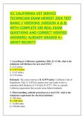 ICC CALIFORNIA UST SERVICE TECHNICIAN EXAM NEWEST 2026 TEST BANK| 2 VERSIONS (VERSION A & B) WITH COMPLETE 500 REAL EXAM QUESTIONS AND CORRECT VERIFIED ANSWERS/ ALREADY GRADED A+ (MOST RECENT!!
