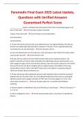 Paramedic Final Exam 2025 Latest Update, Questions with Verified Answers Guaranteed Perfect Score