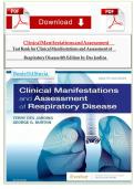 Test Bank for Clinical Manifestations and Assessment of Respiratory Disease 8th Edition by Des Jardins PART 1: Assessment of Cardiopulmonary Disease SECTION I: Bedside Diagnosis 1. The Patient Interview 2. The Physical Examination 3. The Pathophysiologic Basis for Common Clinical Manifestations SECTION II: CLINICAL DATA OBTAINED FROM LABORATORY TESTS AND SPECIAL PROCEDURES—Objective Findings 4. Pulmonary Function Testing 5. Blood Gas Assessment 6. Assessment of Oxygenation 7. Assessment of the...