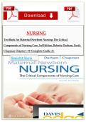 Test Bank for Maternal-Newborn Nursing: The Critical Components of Nursing Care, 3rd Edition, Roberta Durham, Linda Chapman Chapter 1-19|Complete Guide A+ Maternity Nursing Overview 1. Trends and Issues 2. Ethics and Standards of Practice Issues The Antepartal Period 3. Genetics, Conception, Fetal Development, and Reproductive Technology 4. Physiological Aspects of Antepartum Care 5. The Psycho-Social-Cultural Aspects of the Antepartum Period 6. Antepartal Tests 7. High-Risk Antepartum Nursing C...