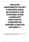 HEALTH ASSESSMENT EXAM 1 (UPDATED 2025) QUESTIONS AND ANSWERS WITH COMPLETE SOLUTIONS VERIFIED BY EXPERT-ALREADY GRADED A+