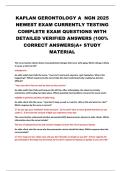 KAPLAN GERONTOLOGY A NGN 2025 NEWEST EXAM CURRENTLY TESTING COMPLETE EXAM QUESTIONS WITH DETAILED VERIFIED ANSWERS (100% CORRECT ANSWERS)A+ STUDY MATERIAL