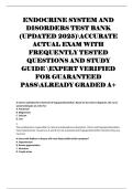 ENDOCRINE SYSTEM AND DISORDERS TEST BANK (UPDATED 2025)ACCURATE ACTUAL EXAM WITH FREQUENTLY TESTED QUESTIONS AND STUDY GUIDE EXPERT VERIFIED FOR GUARANTEED PASSALREADY GRADED A+