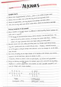 Full handwritten notes covering the 'Alkanes' chapter of the AQA A-Level Chemistry course. Includes detailed explanations, diagrams and examples.