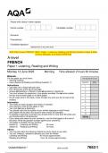 2023 AQA A-level FRENCH 7652/1 Paper 1 Listening, Reading and Writing Question Paper & Mark scheme (Merged) June 2023 [VERIFIED] A-level FRENCH Paper 1 Listening, Reading and Writing