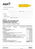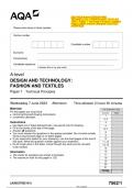 2023 AQA A-level DESIGN AND TECHNOLOGY: FASHION AND TEXTILES 7562/2 Paper 2 Designing and Making Principles Question Paper & Mark scheme (Merged) June 2023 [VERIFIED]