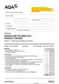 2023 AQA A-level DESIGN AND TECHNOLOGY: PRODUCT DESIGN 7552/2 Paper 2 Designing and Making Principles Question Paper & Mark scheme (Merged) June 2023 [VERIFIED]