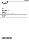 Ste i x Exam (elaborations) • 2 pages • by CERTIFIEDLEC • uploaded 2022 Quick View i x South University • Nursing AQA AS CHEMISTRY 7404/2 Paper 2 Organic and Physical Chemistry Mark scheme June 2021 GRADED A+ (0) $14.49 0x sold AQA AS CHEMISTRY 7404/2 Paper 2 Organic and Physical Chemistry Mark scheme June 2021 GRADED A+ Mark schemes are prepared by the Lead Assessment Writer and considered, together with the relevant