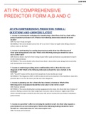 Confirm your answers correctly.. Success in your exams. + Show more reviews 446 items Everything Documents Flashcards Package deal Best sold Newest Rating ATI PN COMPREHENSIVE PREDICTOR FORM A,B AND C. Questions & Answers; Latest Updated A+ Score Solution VERIFIED (0) $11.49 0x sold ATI PN COMPREHENSIVE PREDICTOR FORM A,B AND C. Questions & Answers; Latest Updated A+ Score Solution VERIFIED