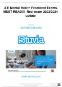 ATI Mental Health Proctored Exams. MUST READ!!! 	Real exam 2023/2024 update written by NURSING2EXAM www.stuvia.com Downloaded by: NURSING2EXAM manom265@gmail.com Want to earn $1.236 extra per year? Distrbuton of this document is illegal