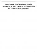 BY ZERWEKH All chaptersTEST BANK FOR NURSING TODAY TRANSITION AND TRENDS 10TH EDITION