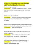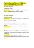 Manager Training i x Package deal • 2 items • by Cindellera • uploaded 2026 i x Manager Training of Assisted Living Facilities Exam with Verified Detailed Answers.docx • Exam (elaborations) Assisted Living ACTUAL EXAM comprehensive questions and verified accurate solution (Detailed & Elaborated) get it 100- accurate!! 2026 TEST!!.docx • Exam (elaborations) Assisted Living Facility Administrator Online Training Practice Exam with Verified Detailed Answers.docx (0) $15.99 0x sold Assisted Living Facility Administrator Online Training Practice Exam with Verified Detailed A i x Exam (elaborations) • 11 pages • by Cindellera • uploaded 2026 Quick View i x Assisted Living Facility • Assisted Living Facility NCIA Review Exam 1 with Verified Detailed Answers.docx (0) $15.99 0x sold NCIA Review Exam 1 with Verified Detailed A i x Exam (elaborations) • 47 pages • by Cindellera • uploaded 2026 Quick View i x Assisted Living Facility • Assisted Living Facility Arizona Assisted Living Facility Manager Exam with Verified Detailed Answers.docx (0) $15.99 0x sold Arizona Assisted Living Facility Manager Exam with Verified Detailed A i x Exam (elaborations) • 16 pages • by Cindellera • uploaded 2026 Quick View i x Assisted Living Facility • Assisted Living Facility Assisted Living Manager AZ Exam with Verified Detailed Answers.docx (0) $15.99 0x sold Assisted Living Manager AZ Exam with Verified Detailed A i x Exam (elaborations) • 41 pages • by Cindellera • uploaded 2026 Quick View i x Assisted Living Facility • Assisted Living Facility Assisted Living Facility Manager Exam with Verified Detailed Answers.docx (0) $15.99 0x sold Assisted Living Facility Manager Exam with Verified Detailed A i x Exam (elaborations) • 61 pages • by Cindellera • uploaded 2026 Quick View i x Assisted Living Facility • Assisted Living Facility Assisted Living Managers Test Exam with Verified Detailed Answers.docx (0) $15.99 0x sold Assisted Living Managers Test Exam with Verified Detailed A i x Exam (elaborations) • 38 pages • by Cindellera • uploaded 2026 Quick View i x Assisted Living Facility • Assisted Living Facility ALF Manager Exam with Verified Detailed Answers.docx (0) $15.99 0x sold ALF Manager Exam with Verified Detailed A i x Exam (elaborations) • 22 pages • by Cindellera • uploaded 2026 Quick View i x Assisted Living Facility • Assisted Living Facility Assisted Living Administrator Exam with Verified Detailed Answers.docx (0) $15.99 0x sold Assisted Living Administrator Exam with Verified Detailed A i x Exam (elaborations) • 0 pages • by Cindellera • uploaded 2026 Quick View i x Assisted Living Facility • Assisted Living Facility Assisted Living State Exam with Verified Detailed Answers.docx (0) $15.99 0x sold Assisted Living State Exam with Verified Detailed A i x Exam (elaborations) • 17 pages • by Cindellera • uploaded 2026 Quick View i x Assisted Living Facility • Assisted Living Facility 1 2 3 4 5 ...