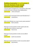 Building Automation 1, Lv II Lesson 4 Security Systems Exam Actual Questions and Answers 2026.docx