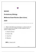 BIO320 Evolutionary Biology Midterms Exam Review 2025 (Qns & AnsBIO320 Evolutionary Biology Midterms Exam Review 2025 (Qns & AnsBIO320 Evolutionary Biology Midterms Exam Review 2025 (Qns & Ans