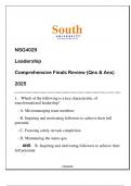 NSG4029 Leadership (SU) Comprehensive Finals Review 2025NSG4029 Leadership (SU) Comprehensive Finals Review 2025