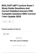 BIOL 2457 A&P 1 Lecture Exam 1 Study Guide Questions And Correct Detailed Answers With Complete Solutions 100% Correct | New Update 2025