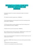 This document contains a comprehensive ServSafe Alcohol practice exam with detailed and elaborated questions and answers. It covers key topics such as responsible alcohol service, identifying intoxication, checking identification, legal responsibilities, and intervention techniques. The material is designed to help students prepare thoroughly for the ServSafe Alcohol certification exam. It includes explanations that reinforce understanding of laws, safety standards, and best practices in alcohol...