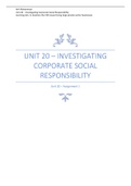 2022 Distinction : Unit 20 - Investigating Corporate Social Responsibility Assignment 1