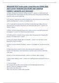 This document contains the fully updated Missouri POST (Peace Officer Standards and Training) comprehensive exam study questions for the 2026–2027 testing cycle, including all verified correct answers. It covers major POST subject areas such as criminal law, traffic law, use of force, constitutional law, patrol procedures, investigations, and report writing. The material is structured to provide complete preparation for Missouri law enforcement candidates and aligns with current POST curriculu...