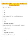 Mathematics Section II Final Exam Questions and Answers Graded A+.