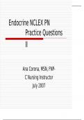 Rationale: Clang association is the meaningless rhyming of words in which the rhyming is more important than the context of the words. A neologism is a made-up word that has mea... i x Exam (elaborations) • 74 pages • by Docmercy • uploaded 2023 Quick View i x NCLEX RN • NCLEX RN Endocrine NCLEX PN Practice Questions II (0) $10.49 0x sold Endocrine NCLEX PN Practice Questions II