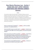 New Mexico Pharmacy Law - Section 1 EXAM 2026-2027 LATEST VERSION QUESTIONS AND VERIFIED CORRECT Answers