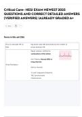 Critical Care- HESI EXAM NEWEST 2025 QUESTIONS AND CORRECT DETAILED ANSWERS (VERIFIED ANSWERS) |ALREADY GRADED A+