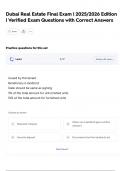 Dubai Real Estate Final Exam | 2025/2026 Edition | Verified Exam Questions with Correct Answers