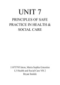 UNIT 7 Assignment (Principles of Safe Practice in Health and Social Care 100% complete 2022