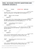 ENGL 102 EXAM 2 POETRY QUESTIONS AND ANSWERS GRADED A
