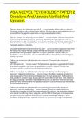 Drdon On this page, you find all documents, package deals, and flashcards offered by seller drDON. 549 Documents 0 Flashcards 10 Package deal Community 0 Followers 0 Following 559 items Everything Documents Flashcards Package deal Best sold Newest Rating AQA A Level Psychology Relationships Questions With Complete Solutions. (0) $11.49 0x sold AQA A Level Psychology Relationships Questions With Complete Solutions. i x Exam (elaborations) • 10 pages • by drDON • uploaded 2024 Quick View i x AQA A Level Psychology Relationships • AQA A Level Psychology Relationships AQA A-Level Psychology – Approaches Questions With Correct Answers. (0) $11.49 0x sold AQA A-Level Psychology – Approaches Questions With Correct Answers. i x Exam (elaborations) • 14 pages • by drDON • uploaded 2024 Quick View i x AQA A-Level Psychology – Approaches • AQA A-Level Psychology – Approaches AQA A LEVEL PSYCHOLOGY PAPER 2 Questions And Answers Verified And Updated. (0) $11.49 0x sold AQA A LEVEL PSYCHOLOGY PAPER 2 Questions And Answers Verified And Updated. i x Exam (elaborations) • 6 pages • by drDON • uploaded 2024 Quick View i x AQA A LEVEL PSYCHOLOGY PAPER 2 • AQA A LEVEL PSYCHOLOGY PAPER 2 AQA A Level Psychology Research Methods Questions With Updated Solutions. (0) $10.89 0x sold AQA A Level Psychology Research Methods Questions With Updated Solutions. i x Exam (elaborations) • 9 pages • by drDON • uploaded 2024 Quick View i x AQA A Level Psychology Research Methods • AQA A Level Psychology Research Methods AQA A Level Psychology Approaches Questions With Complete Solutions. (0) $12.49 0x sold AQA A Level Psychology Approaches Questions With Complete Solutions. i x Exam (elaborations) • 9 pages • by drDON • uploaded 2024 Quick View i x AQA A Level Psychology Approaches • AQA A Level Psychology Approaches AQA A Level Psychology Attachment Questions With Solved Solutions. (0) $11.49 0x sold AQA A Level Psychology Attachment Questions With Solved Solutions. i x Exam (elaborations) • 10 pages • by drDON • uploaded 2024 Quick View i x AQA A Level Psychology Attachment • AQA A Level Psychology Attachment AQA A Level Psychology Memory Questions With Solved Solutions. (0) $10.49 0x sold AQA A Level Psychology Memory Questions With Solved Solutions. i x Exam (elaborations) • 6 pages • by drDON • uploaded 2024 Quick View i x AQA A Level Psychology • AQA A Level Psychology Crcr Test Questions And Answers Latest. (0) $8.49 0x sold Crcr Test Questions And Answers Latest. i x Exam (elaborations) • 1 pages • by drDON • uploaded 2024 Quick View i x Crcr • Crcr CRCR Multiple Choice Questions With Correct Answers. (0) $10.99 0x sold CRCR Multiple Choice Questions With Correct Answers. i x Exam (elaborations) • 27 pages • by drDON • uploaded 2024 Quick View i x CRCR Multiple Choice • CRCR Multiple Choice CRCR Certification Questions With Correct Answers. (0) $11.89 0x sold CRCR Certification Questions With Correct Answers. i x Exam (elaborations) • 16 pages • by drDON • uploaded 2024 Quick View i x CRCR Certification • CRCR Certification 1 ... 29 30 31 ...