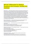 Differential jDx j- j j j jcorrect janswer.Diagnostic jreasoning jis jthe jprocess jof jquestioning jone's jthinking jto jdetermine jif jall jpossible javenues jhave jbeen jexplored jand jif jthe jconclusions jthat jare jdrawn jare jbased jon jevidence. jThis jis ja jcritical jstep jfor jproviders jwho jare jtrying jto juncover ja jcause, jor jdiagnosis, jfor jtheir jclients' jsigns jand jsymptoms. jThe jprovider'... i x Exam (elaborations) • 30 pages • by drDON • uploaded 2024 Quick View i x NR 547 Differential Dx • NR 547 Differential Dx Promulgated Contract Forms (Champions) questions and answers latest. (0) $10.49 0x sold Promulgated Contract Forms (Champions) questions and answers latest.