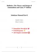 Complete Solutions Manual for Ballistics, The Theory and Design of Ammunition and Guns, 3rd Edition By Donald E. Carlucci, Sidney S. Jacobson ; ISBN13: 9781138055315. (Full Chapters included Chapter 1 to 21)....1. Introductory Concepts. 2. Physical Foundation of Interior Ballistics. 3. Analytic and Computational Ballistics. 4. Ammunition Design Practice. 5. Weapon Design Practice. 6. Recoil Arresting and Recoilless Guns. 7. Introductory Concepts. 8. Dynamics Review. 9. Trajectories. 10. Lineariz...