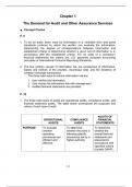 Auditing and Assurance Services 16th Edition Arens Test Bank, Questions and Answers - All Chapters. Part 1: The Auditing Profession Chapter 1: The Demand for Audit and Other Assurance Services Chapter 2: The CPA Profession Chapter 3: Audit Reports Chapter 4: Professional Ethics Chapter 5: Legal Liability Part 2: The Audit Process Chapter 6: Audit Responsibilities and Objectives Chapter 7: Audit Evidence Chapter 8: Audit Planning and Materiality Chapter 9: Assessing the Risk of Material Misstatem...