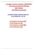 Complete Solutions Manual for Canadian Income Taxation Planning and Decision Making, 26th Edition by By William Buckwold, Joan Kitunen, Matthew Roman, Abraham Iqbal ; ISBN13: 9781264837922. Full Chapters included Chapter 1 to 23. Chapter 1. Taxation-Its Role in Decision Making. Chapter 2. Fundamentals of Tax Planning. Chapter 3. Liability for Tax, Income Determination, and Administration of the Income Tax System. Chapter 4. Income from Employment. Chapter 5. Income from Business. Chapter 6. The ...