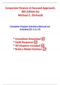 Complete Solutions Manual for Corporate Finance A Focused Approach, 8th Edition by Michael C. Ehrhardt, Eugene F. Brigham, 9780357714638. Full chapters included Chapter 1 to 17. 1. An Overview of Financial Management and the Financial Environment. 2. Financial Statements, Cash Flow, and Taxes. 3. Analysis of Financial Statements. 4. Time Value of Money. 5. Bonds, Bond Valuation, and Interest Rates. 6. Risk, Return, and the Capital Asset Pricing Model. 7. Corporate Valuation, Stock Valuation and ...